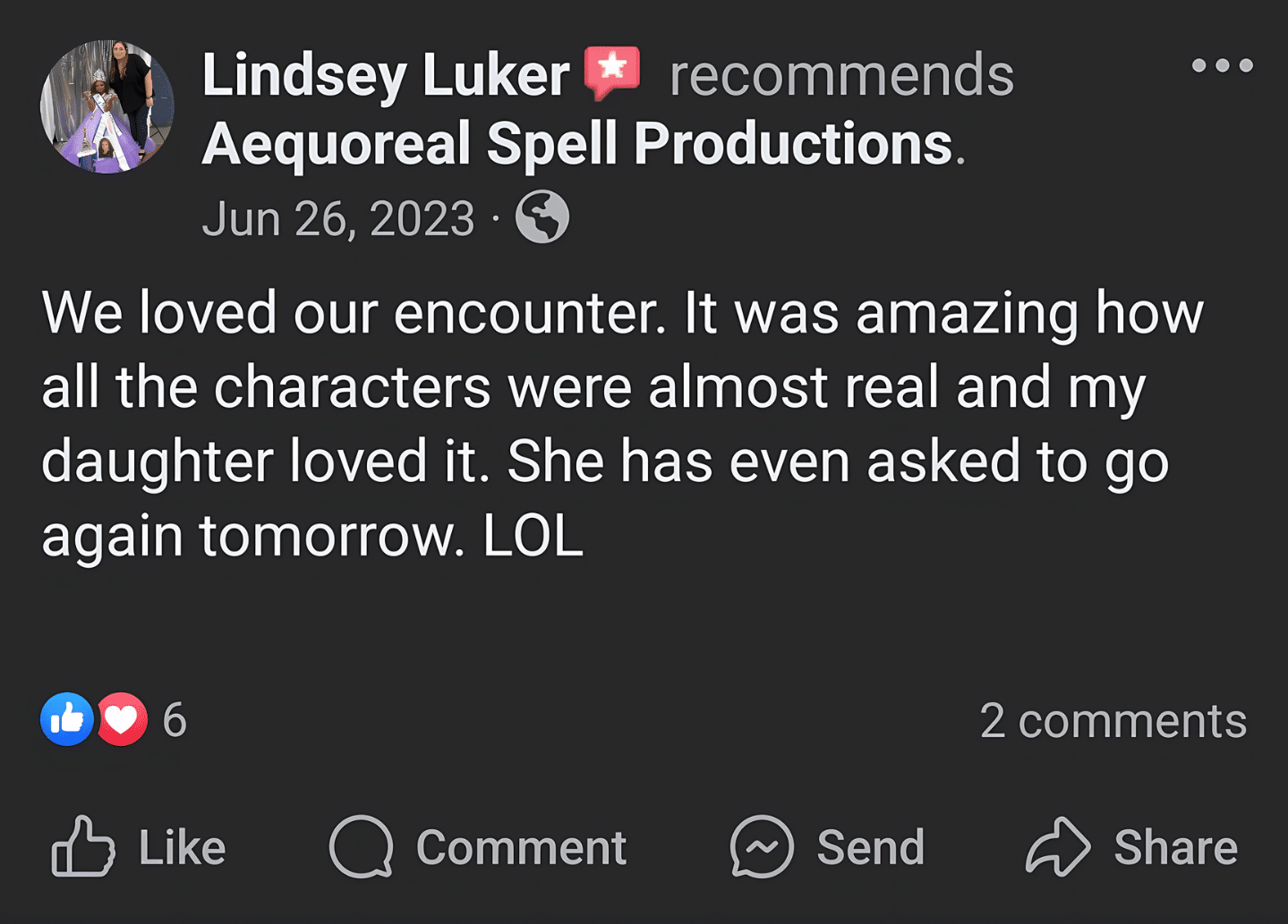 Aequoreal Spell Productions is more than just an entertainment company; it is a provider of immersive experiences. The company prides itself on its incredibly realistic and high-quality character portrayals. Every performance is a masterclass in improv, ensuring that children and parents alike are entertained and enchanted. Harleen Hill and her team are dedicated to understanding each client, providing a bespoke experience tailored to individual needs and preferences. This personal touch has earned them a loyal clientele who value the magical experiences they create.