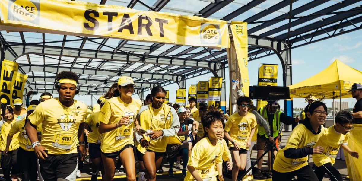 The Teen Race of Hope is a 5K (3.1 mile) U.S. Track and Field-certified race. At the starting gun, Noelle and Anysa led participants, all wearing HDRF’s signature sunshine yellow color with matching caps and t-shirts, on a scenic 5K course starting at Pier 76 Hudson River Park and continuing along the esplanade with views of the Hudson River.
