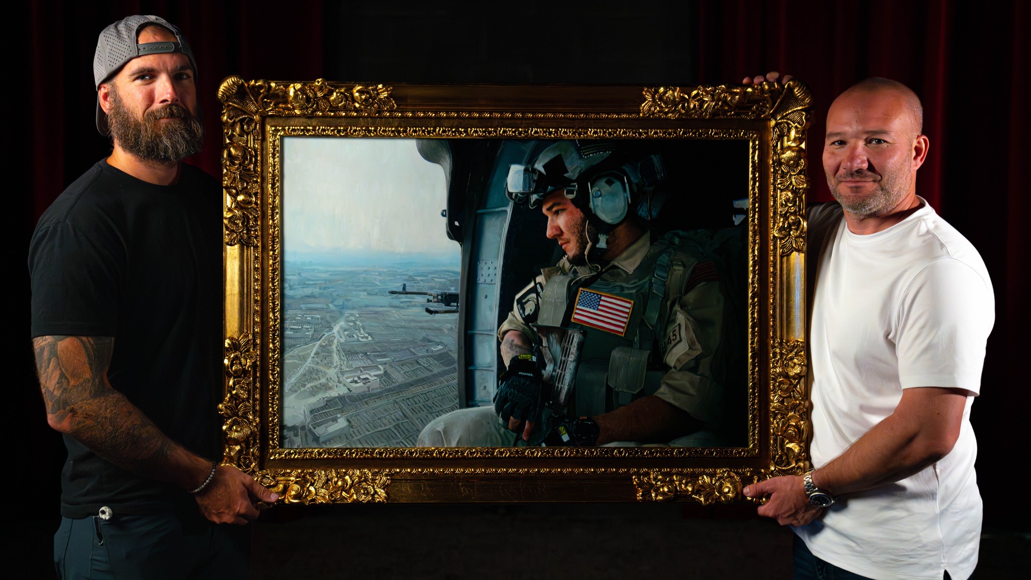 That momentum eventually carried him beyond his immediate circle. Hughes completed one commissioned painting for Shawn Ryan before later flying out to appear on The Shawn Ryan Show. During that visit, he delivered a second painting in person, a piece depicting Ryan during an operation in Yemen.