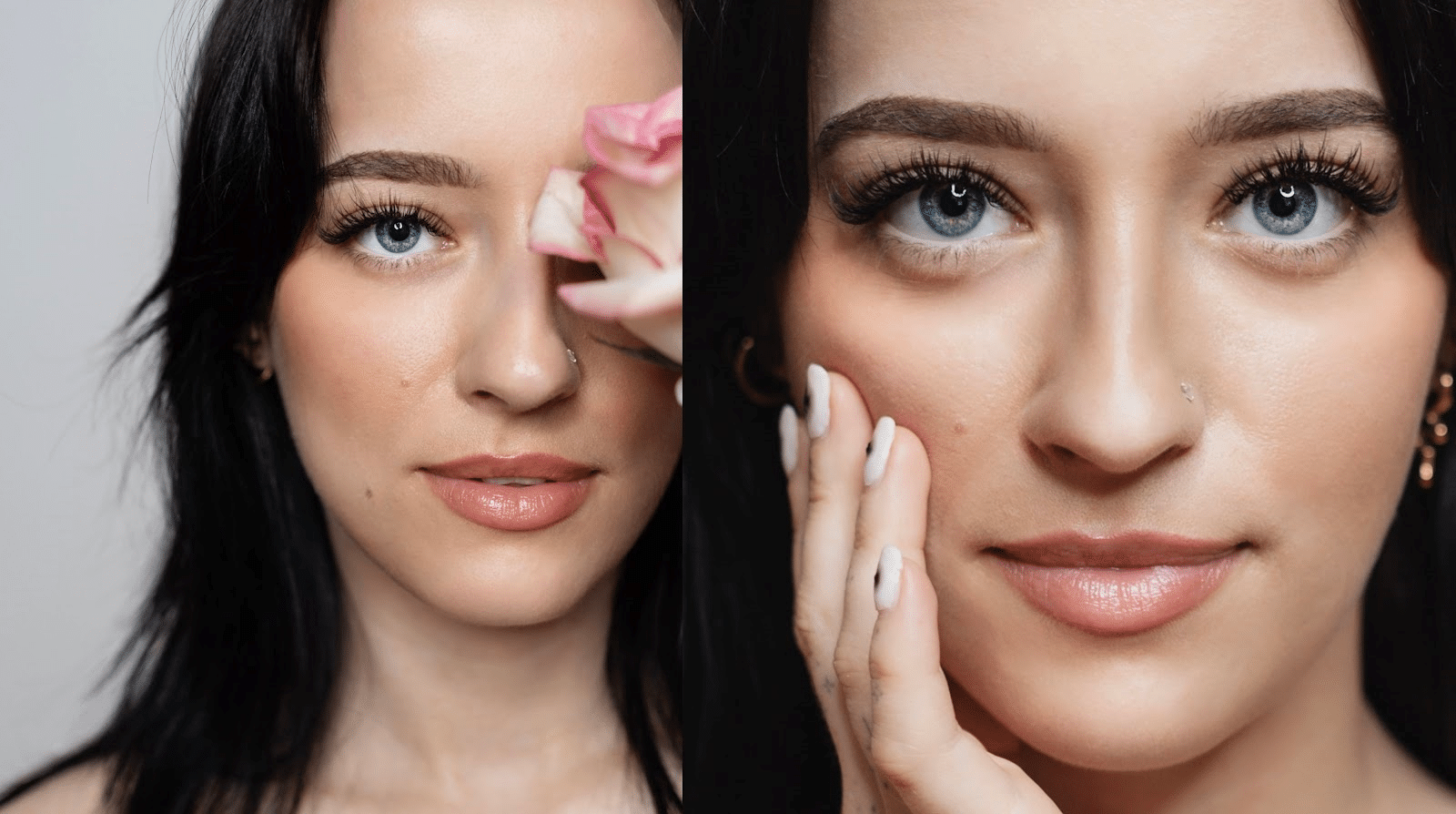 Her ocean-blue eyes, brimming with depth and clarity, inspired a Natural style of lash extensions. This approach adds light volume and matches her lash length, enhancing her natural allure without overwhelming it. The result is a seamless blend of elegance and striking beauty.